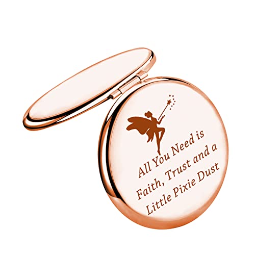 Mini specchio da trucco da favola inciso con i detti "All You Need is Faith Trust and Pixie Dust". Un regalo perfetto per viaggi, matrimoni, compleanni, vacanze, festa della mamma, Halloween e Natale.