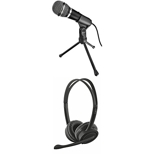 Trust Starzz Microfono con Cavo da 250 cm, Spinotto da 3.5 mm, Base a Treppiede + Mauro Cuffie USB con Microfono