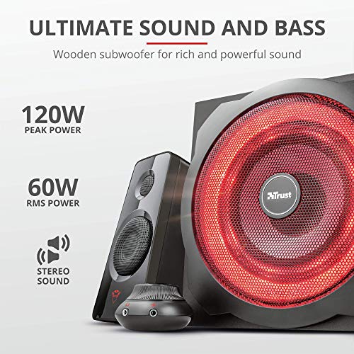 Trust Tytan Gaming GXT 4628 Thunder Set di Altoparlanti da Gioco 2.1 con Subwoofer Illuminato a LED Rosso