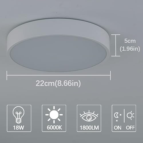 TRUYOK Plafoniera LED Soffitto Moderna con Sensore di Movimento 18W Bianco Freddo 6000K Lampada a soffitto in Metallo, per Corridoio Balcone Garage, Bianca, 22CM