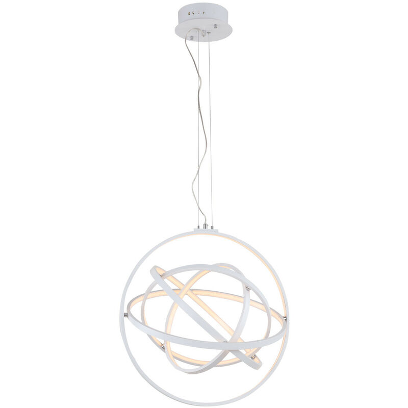 Italux Tryton Plafoniera Moderna a Sospensione Sferica LED, 3000K | Finitura: bianco | Materiale: alluminio, lega metallica | Classificazione IP: IP20 | Altezza: 55cm | Altezza massima: 100 cm | Diametro: 60 cm | Lampadina inclusa: Sì | Kelvin: 3000K - Bianco caldo | Lumen: 3850lm | Potenza (massima): 56W