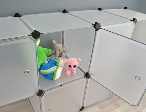 Contenuto della confezione: 28 pannelli 36x36 cm, 8 sportelli 36x36 cm, 30 connettori neri. I componenti in plastica sono resistenti e facili da pulire. Gli sportelli sono facilmente removibili.