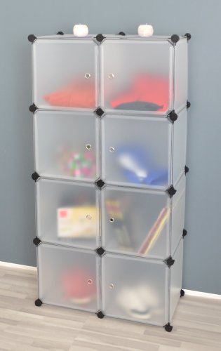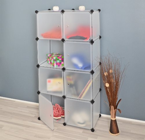 Questo armadio a scomparti con 8 sportelli bianchi trasparenti si adatta facilmente all'ambiente desiderato, che sia la camera dei ragazzi, il bagno, l'ufficio, il corridoio o la camera da letto.