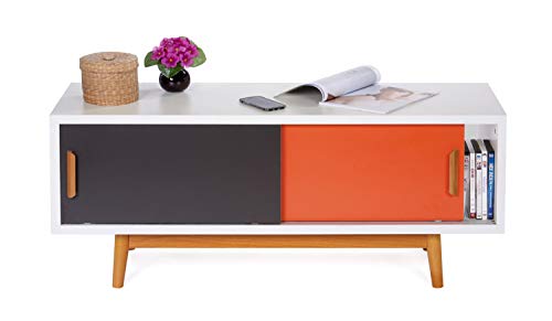 Ts-ideen Mobile Porta televisore 120x55 cm Stile Retro in Bianco Grigio e Arancione Doppio sportello Scorrevole