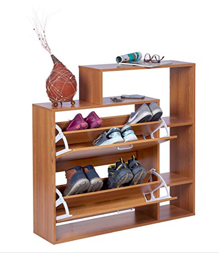 Ts-ideen Scarpiera da Parete Scomparto per Le Scarpe Effetto Legno 2 cassetti e Libreria Mensoliera Scaffale