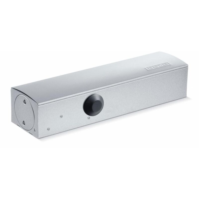 Dettagli: GEZE TS 3000 V chiudiporta aereo con fermo meccanico Per il montaggio su porte tagliafuoco e tagliafumo secondo EN 1154 A, forza 1-4 A guida, forza di chiusura regolabile lateralmente, scatto idraulico e velocità di chiusura termocostante regolabile con vite sul frontale Montaggio standard su anta, sul lato cerniera con piastra di montaggio L'unità di fermo è integrata nel binario di guida e consente di tenere aperta la porta con un angolo compreso tra 80° e 130° La forza di fermo è regolabile Il dispositivo di fermo può anche essere disattivato. Caratteristiche: Fornito con materiale di montaggio e dima di montaggio (piastra di montaggio non fornita) Fornito senza braccio Caratteristiche: Colore: Argento Argento