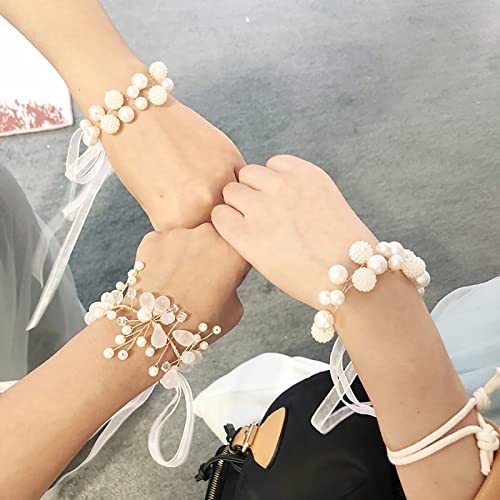 *TseenYi Bianco Perla Wrist Flower Wrist Chain.Materiale: perla, comodo da indossare. Colore: Dorato. Lunghezza: Come mostrato nell'immagine, adatto alla maggior parte delle donne.1 per confezione.