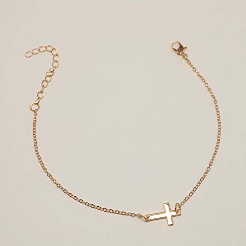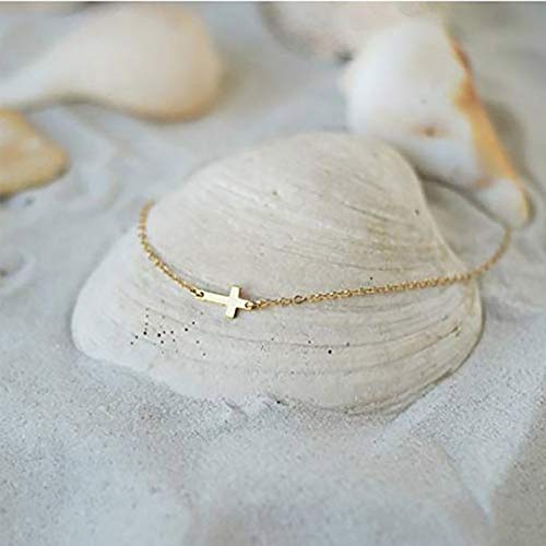TseenYi - Cavigliera a forma di croce minima, con croce in oro, per la spiaggia, per la religione di donne e ragazze (oro)