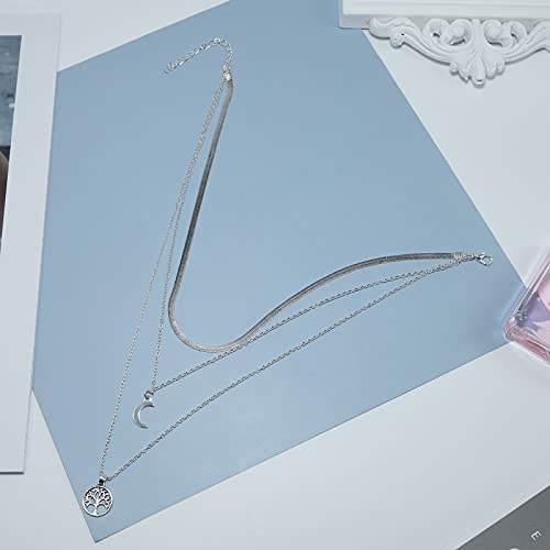 TseenYi - Collana multistrato, con ciondolo a forma di albero della vita, in argento con catena a serpente, stile bohémien, per donne e ragazze