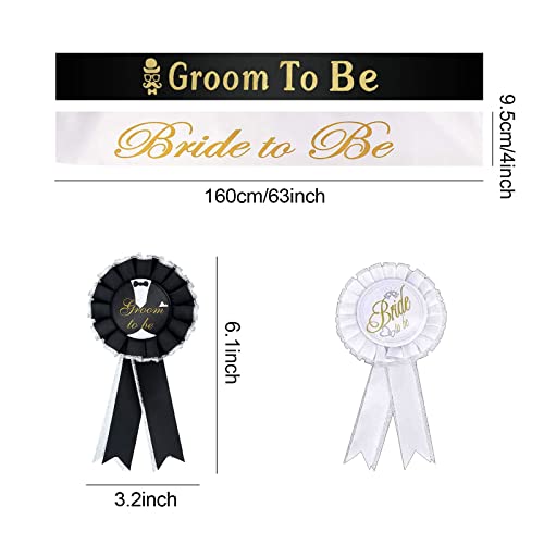 La confezione include: 1 fascia in raso per sposo e 1 spilla per sposo, 1 fascia in raso per sposa e 1 spilla per badge sposa, 4 pezzi in totale
