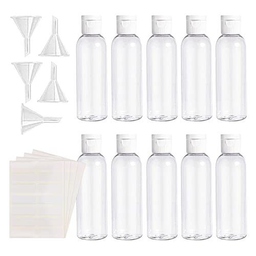 TSHAOUN 10 pezzi 100 ML Bottiglie di Plastica Vuote Bottigliette da Viaggio Aereo,con 5 pezzi Piccoli imbuti e 4 pezzi Etichette autoadesive,per viaggi, viaggi d'affari, ecc. (19 PCS)