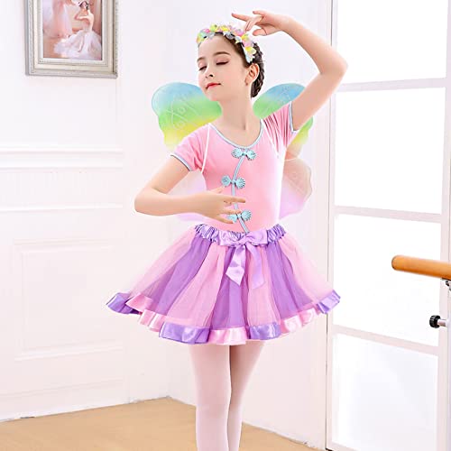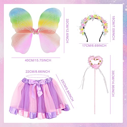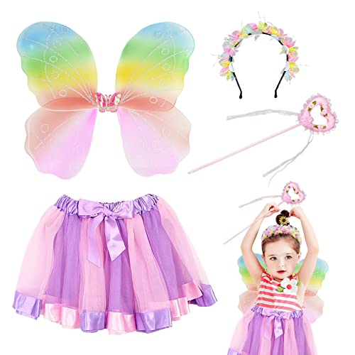 TSHAOUN 4 Pezzi Costume Farfalla Arcobaleno Bambina, Costume da Farfalla Fata Ali Bacchetta Magica Cerchietto Tutù, Principessa per Ragazze Carnevale Halloween Costume da Festa Cosplay (Arcobaleno)