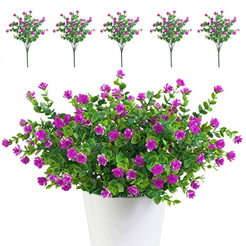 TSHAOUN 5 pezzi Fiori Finti Artificiali Arbusti Piante Resistenti ai Raggi UV per Interni ed Esterni, Decorazione per Casa, Ufficio, Giardino, Patio, Cortile (Fucsia 5 Pezzi)