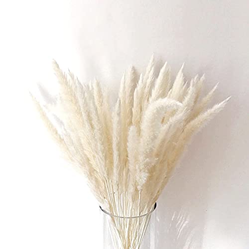 TSHAOUN 30 Pezzi Naturali Pampas Fiori Secchi, 43 cm Phragmites Communis Bouquet Piccola Erba Secca di Pampa, Matrimonio Mazzo di Fiori, Boho Decorativi per Vasi Hotel Casa Fotografia (Bianca)