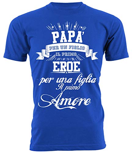 Tshirt Festa del papà - Papa' Primo Eroe per Un Figlio Primo Amore per Una Figlia -Idea Regalo Festa del papà - in Cotone