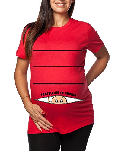 Tshirt Lunga da Donna Ideale per Il Premaman Fratellino in Arrivo - Tshirt Simpatiche e Divertenti - Humor