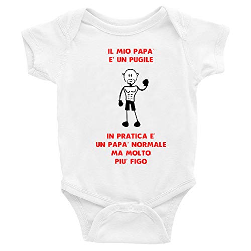 Tshirt Body Neonato Festa del Papà il mio papà è un pugile, in pratica un papà normale ma molto più figo - body divertenti