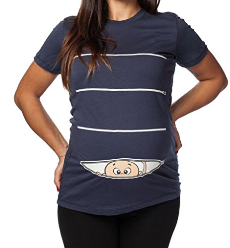 Tshirt Premaman Divertente. Bimbo Che esce dalla Zip Stampa Divertente Maglietta Gravidanza Simpatica