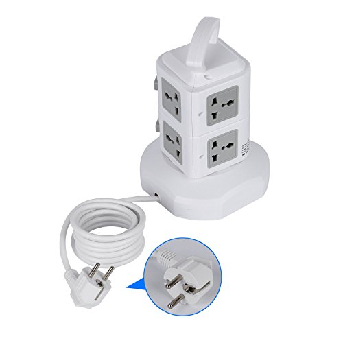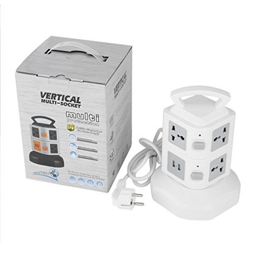 Tsing - Multipresa USB Ciabatta Elettrica Verticale con 7 Uscite 2 Porte USB e 2 Interrutori, Grigio/Bianco