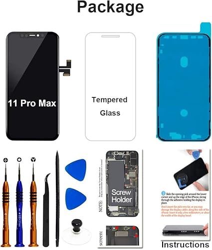 Contenuto - Schermo LCD di per iPhone 11 Pro Max 6,5 pollici + kit di strumenti di + pellicola protettiva per lo schermo + adesivo impermeabile