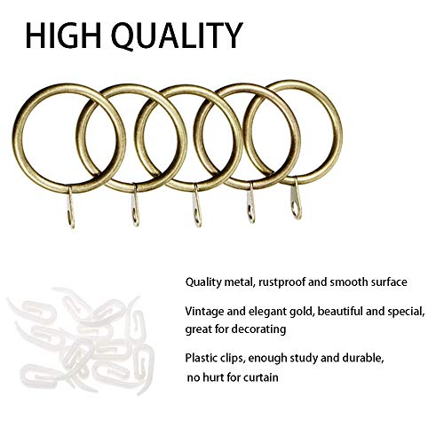 Sicuro e vintage: gli anelli per tende in metallo sono lucidati senza sbavature, le clip per tende in plastica forniscono un forte morsetto e non danneggiano la tenda. Il colore ottone vintage sembra delicato ed elegante, migliora perfettamente lo stile di decorazione.
