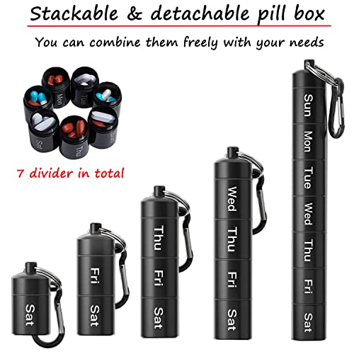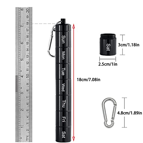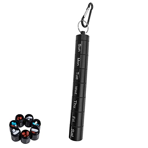 TSKDKIT Portapillole Settimanale Metallo Portapasticche Settimanale Tascabile Organizer Porta Pillole con Portachiavi e Gancio, Portapasticche Giornaliero Piccolo per Viaggi All'aria Aperta
