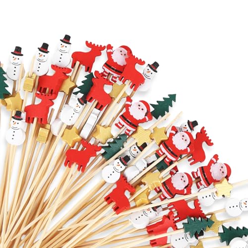 Contenuto della confezione: riceverai 100 decorazioni natalizie per cocktail, circa 12 cm, quantità sufficiente, leggere e abbastanza resistenti per soddisfare le tue esigenze di decorazione per feste di Natale. Ideale per bastoncini di cibo, bastoncini di bambù, stuzzicadenti da cocktail.