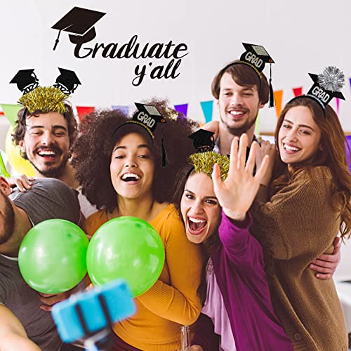 TSLBW Cerchietto con Cappelli da Laureato 3 PCS Fascia per Capelli per Cappello da Laurea Dorata Cappello da Laurea con Nappa con Lettera Glitterata per Laurea Costume Decoro Foto Prop