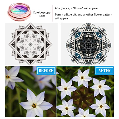 TSLBW Kit Obiettivo 6 in 1 per Cellulare, Obiettivi per Fotocamera, Obiettivo Grandangolare 0,63x, Macro 15x, Teleobiettivo 2X, Fisheye 198 °, Caleidoscopio, CPL, Compatibilità Universale