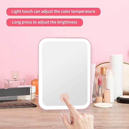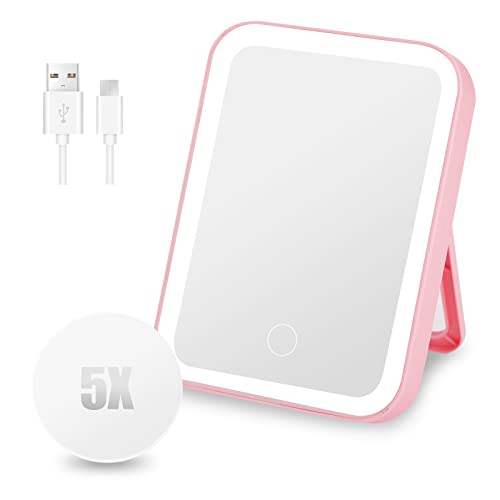 TSLBW Specchio da Trucco con Luci a 3 Colori Specchio da Viaggio Portatile Ricaricabile via USB con Touch Screen Regolabile, Ingranditore 1X/5X, Specchio da Tavolo Compatto da Viaggio Illuminato