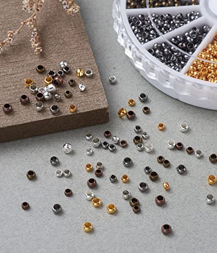 TSLRSA Perline Crimpare, 2250 Pezzi 2 mm - 2.5 mm Misto Braccialetto Sciolto Perline,Perline Distanziali Rotonde in Metallo, Perline Piccole Crimp Beads per Fabricazione di Gioielli (6 Colori)
