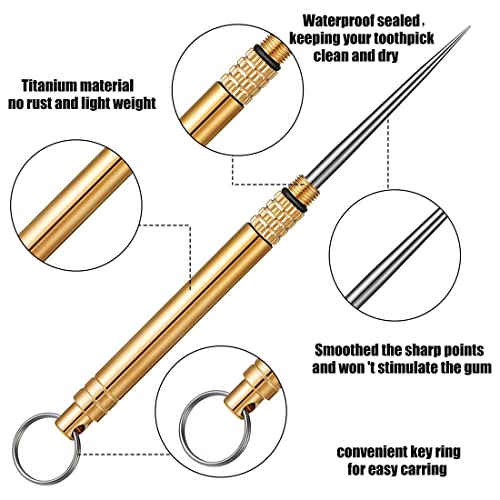 TSLRSA Stuzzicadenti Portatili in Titanio - 4 PCS Metallo Stuzzicadenti Impermeabile Stuzzicadenti Riutilizzabili per Campeggio, Picnic, Viaggi