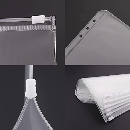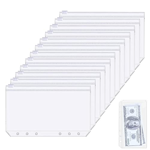 TSLRSA Tasche Raccoglitore A6, 12Pcs 6 Fori Raccoglitore Sacchetto 12Pcs A6 Formato, PVC Borsa per Raccoglitore Cerniera in Plastica, per raccoglitore ad anelli e cash stuffing