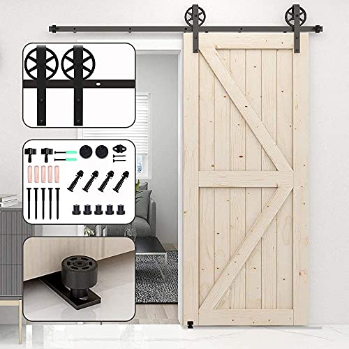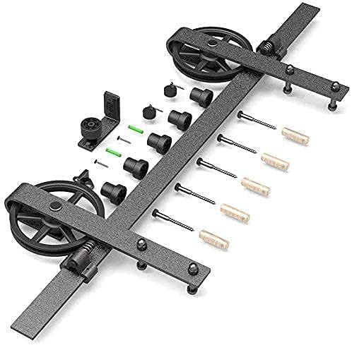 TSMST 152CM/5FT Binario per Porta Scorrevole Kit, Singola Porta Scorrevole Sistema Accessori con Guida a Pavimento Regolabile Scorrevole (Grande Ruota Stile - 01)