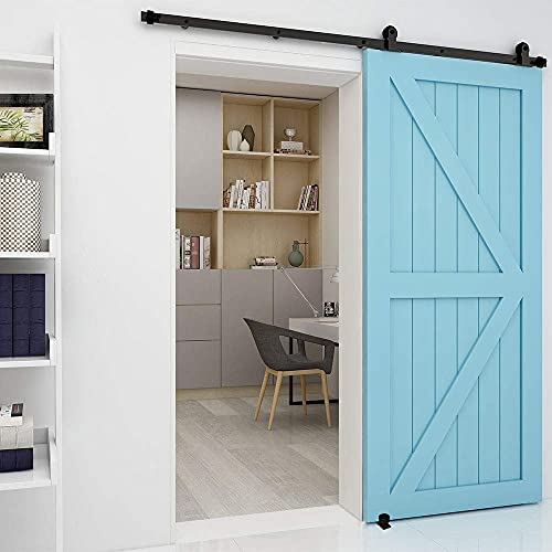 TSMST 7FT(2.13M) Binario per Porta Scorrevole Kit Accessori con Guida Porta Regolabile Scorrevole per Porta Singola Scorrevole (T-Stile Puleggia Sospesa)