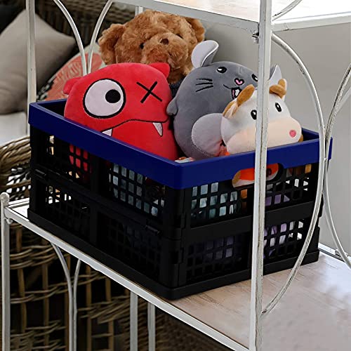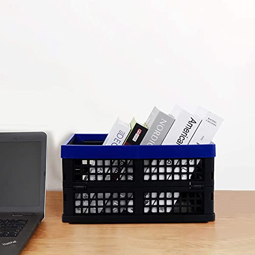 Tstorage 16 L Cesti Cassetta Impilabili Pieghevole in Plastica per Uso Domestico, Colore Nero e Blu Profond, 2 Confezioni