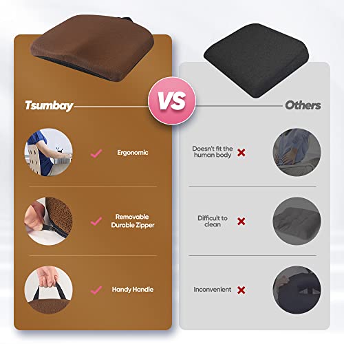 Tsumbay Cuscino per Sedile Universale Memory Foam, Cuscino Comodo per Ufficio Auto, Ergonomico Cuscini Seduta Innovativa Universale con Guaina Rimovibile (Marrone)
