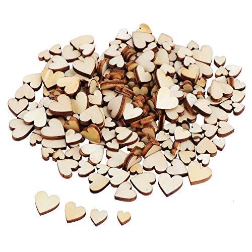 TsunNee - Set di 200 bottoni a forma di cuore, in legno, per decorazioni fai da te, decorazione per matrimoni, feste, decorazioni fai da te, in legno, a forma di cuore