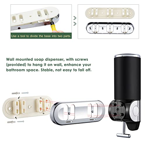 Dispenser di sapone dal design a parete: dispenser di sapone a parete, facile da installare. Con viti (in dotazione) nel prodotto, appendilo a parete. È stabile, non facile cadere, migliora lo spazio del tuo bagno. Efce alternativa alle bottiglie di lozione disordinate. Non è necessario posizionare tutti i tipi di bottiglie diverse sul piano di lavoro dopo aver scelto questo dispenser di sapone. È un accessorio indispensabile per cucina e bagno.