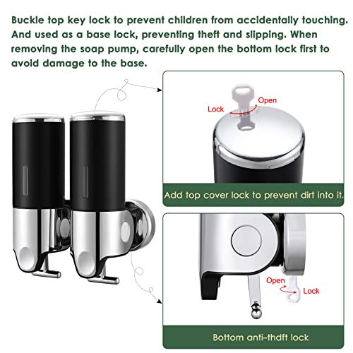 doppie pompe e grande capacità: utilizzare sempre un contenitore per sapone liquido per ridurre la spazzatura ambientale. Dispenser di sapone a doppia, elimina il disordine della bottiglia da doccia con questo comodo dispenser. Ogni camera è di 500 ml. 1000 ml risparmieranno tempo prezioso e frequenza di ricarica e ti permetteranno di acquistare i tuoi liquidi preferiti alla rinfusa per ridurre il tuo costo.