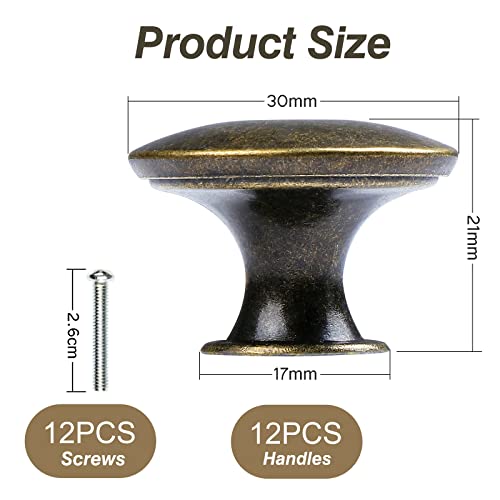 TsunNee - 12 pomelli per armadietti vintage, pomelli per cassetti chic, maniglie per mobili della cucina antiche, pomelli rotondi per ante di mobili da 30 mm, colore bronzo