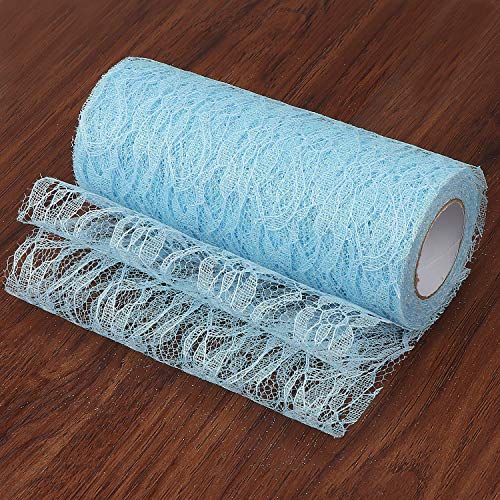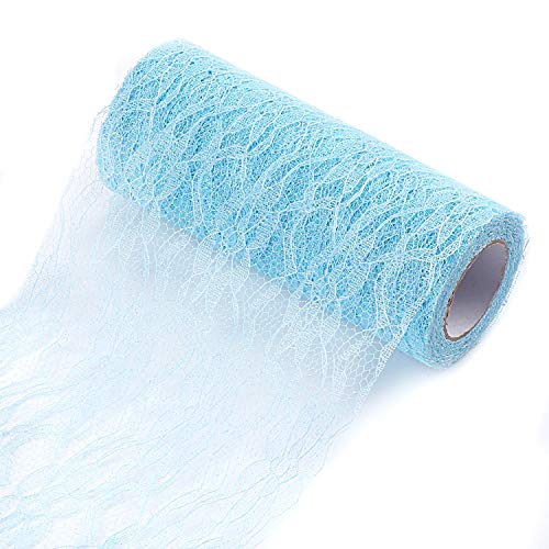 TsunNee 15cm x 9.1m Runner in pizzo, fascia per sedia, materiale tutù, fiocco in pizzo, per decorazioni da tavolo sedia da sposa, glitter, Blu