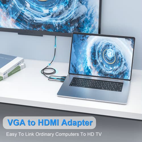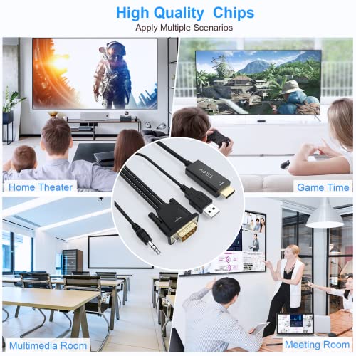 【Garanzia】 Cavo da VGA a HDMI da 180 cm, cavo adattatore AUX da 3,5 mm + cavo USB, il cavo da VGA a HDMI con audio supporta una risoluzione video fino a 1920 x 1080p a 60 Hz, display digitale HD puro, nessuna doppia immagine, nessuna perdita di trasmissione, garanzia di 24 mesi e un servizio clienti amichevole sempre qui.