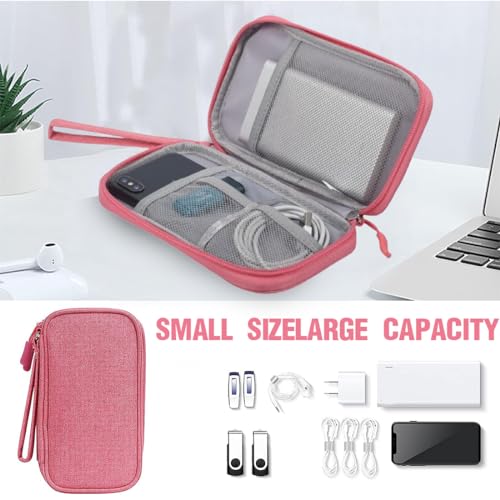 TSUWNO Borsa per Cavi,Organizer per Cavi elettronici,Organizer per Cavi, Accessori elettronici,Borsa Universale per Accessori per Cellulare, Cavo di Ricarica,Power Bank,chiavette USB,SD,3 Layer(Rosa)