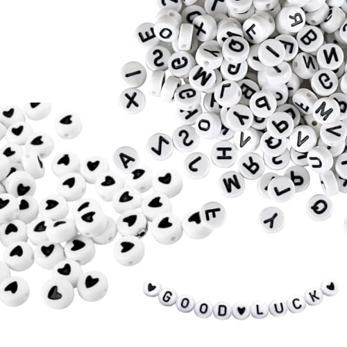 TSUWNO 400 Perline acriliche sfuse con Lettere Inglesi, per Bambini e Ragazze. Strumenti di educazione precoce Fai-da-Te per la creazione di collane e Braccialetti. Diametro di 7 mm, Colore Bianco.