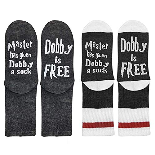 Lettere simpatiche e divertenti stampate sul fondo delle calze: Master ha dato a Dobby un calzino, Dobby libero. Il colore e la taglia unisex sono adatti per uomo e donna.