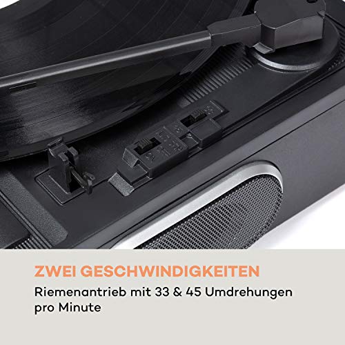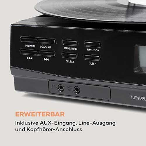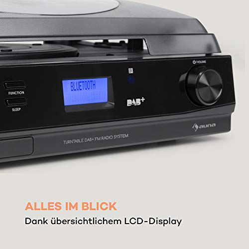 AUNA TT-186 Giradischi DAB - Radio DAB+/FM, Funzione Bluetooth, Trasmissione a Cinghia con 33/45 Giri/min, Ingresso AUX, Uscita di Linea, Funzione Sleep, incl. Collegamento Cuffie, Nero