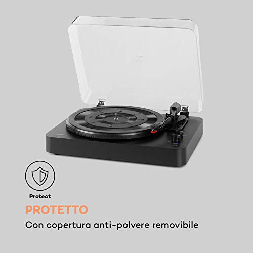 Auna TT-Play SE - Giradischi con Casse, Altoparlanti Stereo: 20 Wmax, Bluetooth, 33/45/78 Giri/Min, Trazione a Cinghia, Pick-up Stereo in Ceramica, Pitch Control, AUX In, Audio Out, Nero