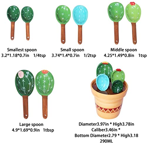 TTCPUYSA 4 PCS Creative Cactus Ceramic Measuring Spoon,Cactus Measuring Spoons Set in Pot - Cute Cactus Shape Porcelain Measuring Spoon with Base for Coffee, Milk,Sugar (B)