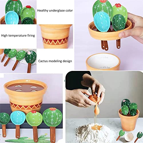 【Premium Quality】: These cactus measuring cups and spoons set made through 1100 degrees high temperature, which is thick,durable and no fade when using. Material is ceramic,easy cleaning and wash in dishwasher.